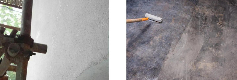 施工前先將基層上的污物,灰塵等附著物清除,基面要充分干燥后進(jìn)行施工,基面含水率<10%;PH<10。